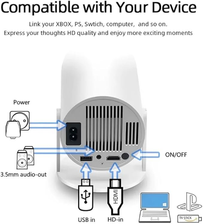 • 🎮Projetor de Console de Jogos de Fácil Configuração🎮 Desfrute de jogos fluidos e sem atrasos com controles sem fio 2.4G a até 10 metros de distância. Ligue o projetor e explore uma pasta integrada com mais de 36.000 jogos retrô. Configuração sem esforço, diversão sem fim.